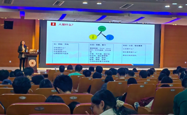 杨书记首先对贾晓雪女士应邀前来表示了诚挚的谢意和热烈的欢迎,杨书记讲到,此次前来参加讲座的同学正值大三下学期,面临众多选择迷茫不堪,希望同学们借此机会积极与贾晓雪女士交流并探讨职业生涯规划。